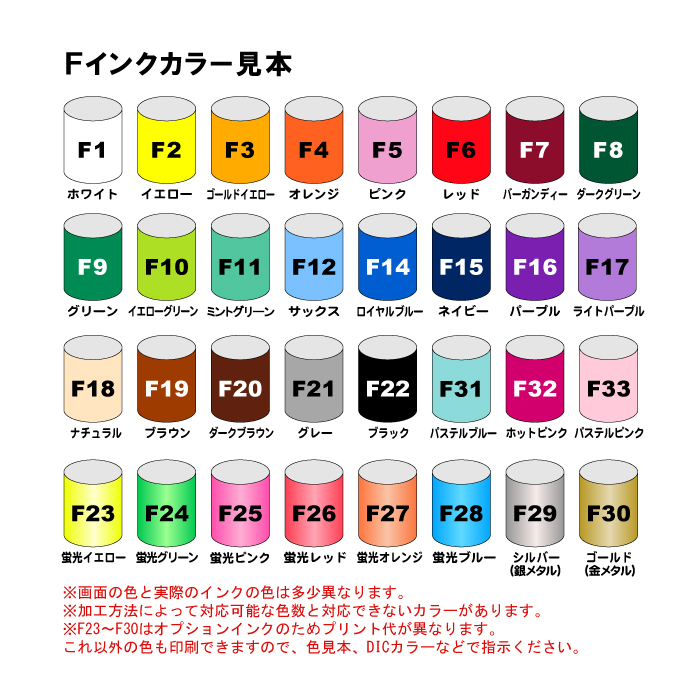 - 1色ごとに製版する為、オンデマンドや少枚数のプリントは割高なのでお奨めできません。